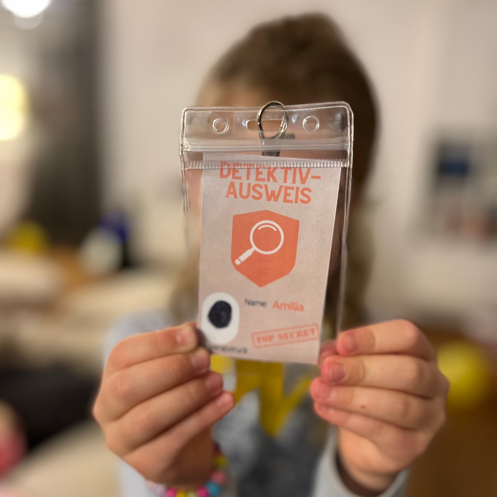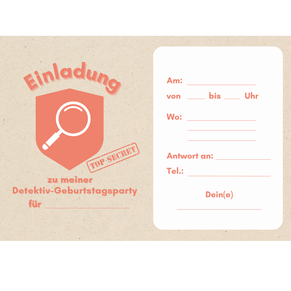 Lade dir die kostenlose Detektiv-Einladungskarte herunter und stimme die Kinder direkt auf das Abenteuer ein.