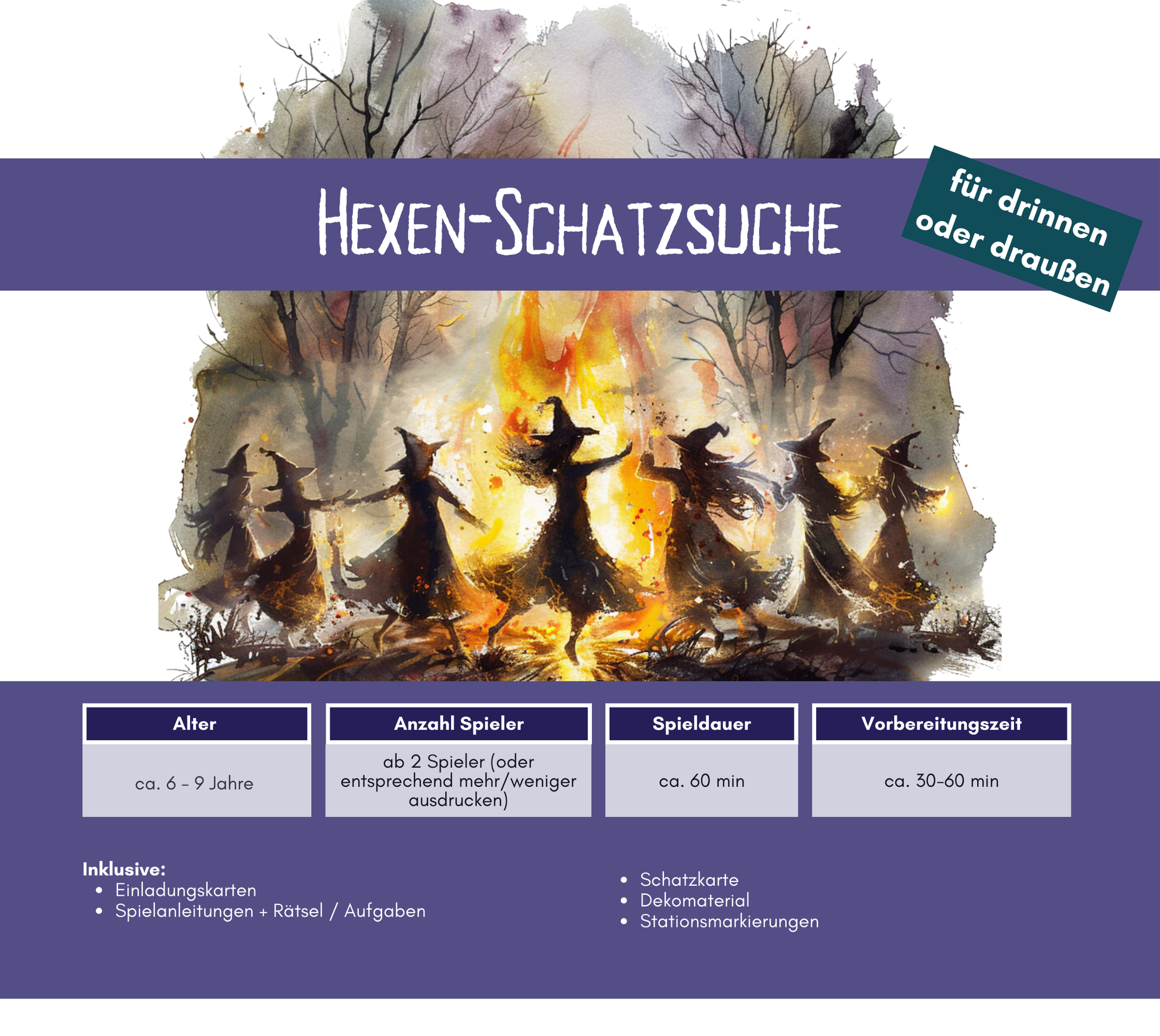 Hexen Schatzsuche für Kinder (6-9 Jahre) zum Ausdrucken | Sofort-Download